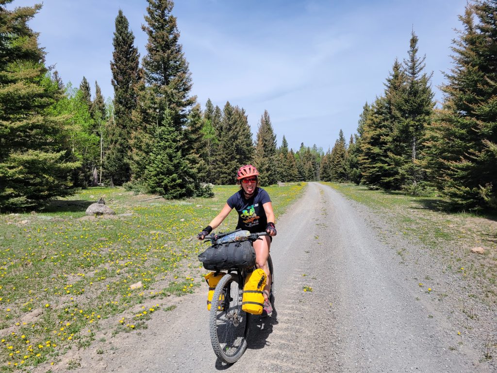 Kolejną ważną sprawą w bikepackingu jest rozłożenie wagi. Gdy jeździmy z sakwami większość sprzętu, tego najcieższego umieszczamy na tylni bagażnik. W bikepackingu jest na odwrót. Większość bagażu umieszczamy na widelcu czy na kierownicę. Na GDMBR dziennie pokonywałam od 1000 do 2000m przewyższeń i uważam, że bardzo dużym ułatwieniem było skoncentrowanie bagażu z przodu roweru.