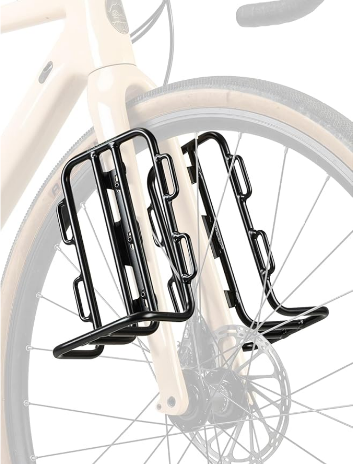 Torby na widelec. Wszyscy podróżni gravelovcy mają w swoich rowerze otwory na przymycowanie torby. Ja posiadaczka roweru górskiego takich otworów nie miałam. Z jednej strony widelca miałam zamontowaną klatkę montażową, inaczej koszyk na ramę – Topeak Versacage. Ma on zaciski, które bardzo ułatwiają montaż. Taka klatka jest dosyć solidna i dużo wytrzyma, jednak jest zrobiona z plastiku i po 3 miesiącach podróży plastik nie wytrzymał i po prostu połamał, więc nie jest to sprzęt na lata, przy częstym użytkowaniu.