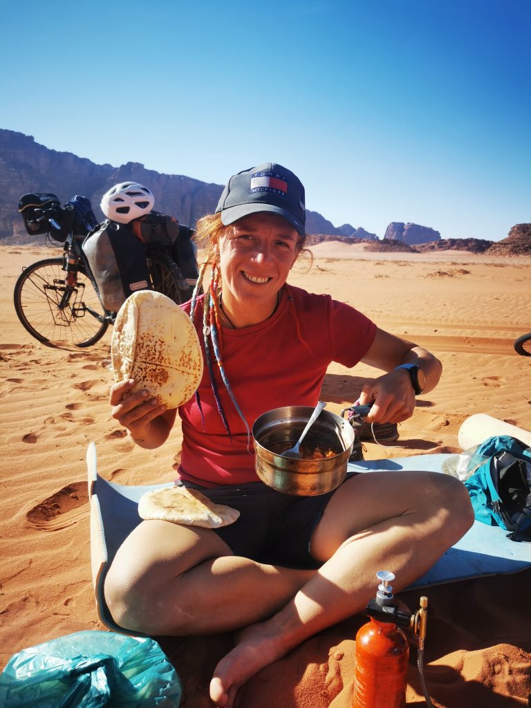 Udało nam się przejechać z miasteczka Wadi Rum do wioski Tutun. 40 kilometrów pod pustyni. I choć często było trzeba pchać rower. I choć było trzeba zrobić zapas wody i jedzenia na dwa dni. I choć czasami miałam dosyć… To jednak absolutnie nie żałuję tej decyzji.