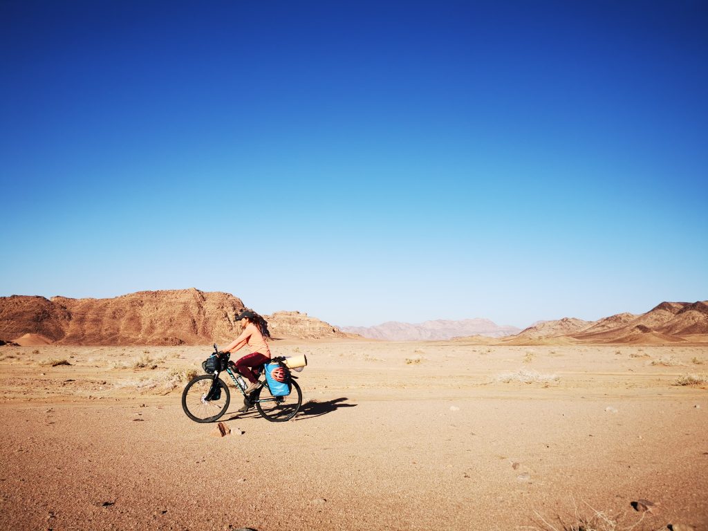 Przejazd przez pustynię może być super wyzwaniem rowerowym, a przepiękne, księżycowe widoki, poczucie osamotnienia oraz możliwość rozbicia się z dala od turystów i pseudo beduińskich kempingów to wrażenia niezapomniane!