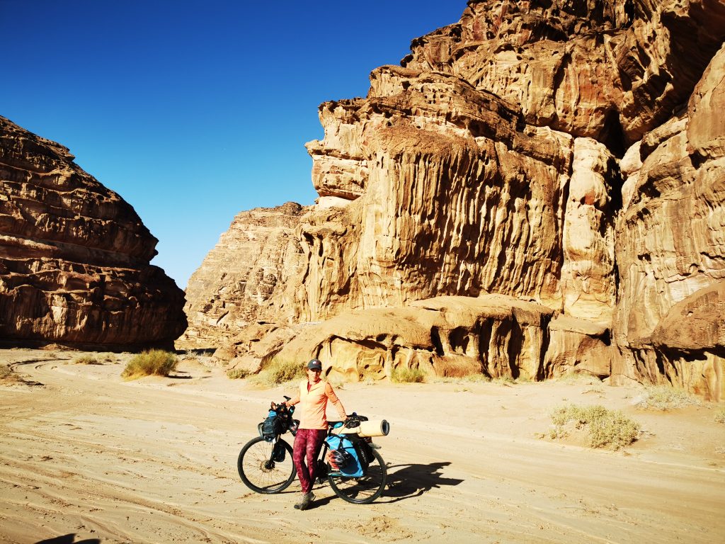 Na południu Jordanii znajdziecie Pustynię, z malutkim miasteczkiem Wadi Rum, którą pewno wielu planujących podróż do Jordanii zna. Ja jednak chciałabym przedstawić pustynię z inne perspektywy. Z perspektywy roweru. I choć dosyć szalonym pomysłem wydawał się przejazd przez pustynię rowerem z sakwami oraz na cieknich oponach, jednak były to jedne z ciekawych dni w Jordanii.