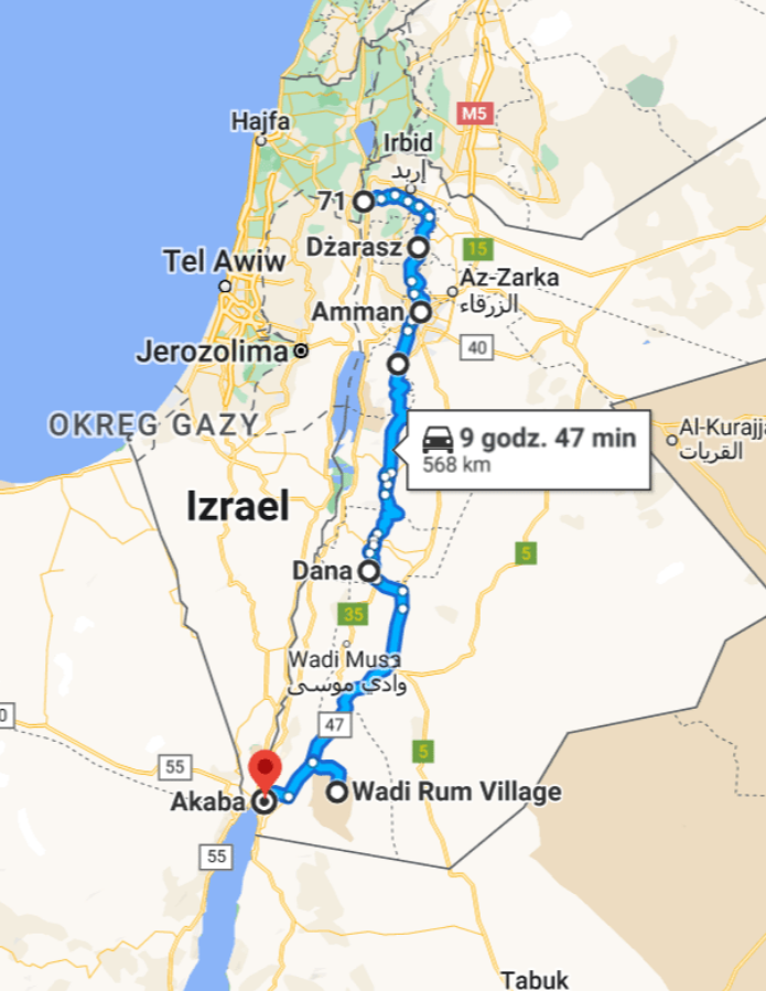 Kraj ten jak również cała Azja Centralna został przejechany z moim wspaniałym kompanem Jackiem. Jordańską przygodę rozpoczęliśmy od północy kraju, wjeżdżając z Izreala. Poruszaliśmy się głównie królewską drogą, czyli trasą numer 35. Ciekawym pomysłem jest też przejechanie Jordańskiej drogi rowerowej – Jordan Bike Trail. Jednak jest to wymagająca, offroadowa trasa, idelany pomysł na bikepacking. My obładowani sakwami, na wąskich oponach wybraliśmy trochę łatwiejszy wariant wycieczki, który jednak okazał się nadal wymagającym kierunkiem.
