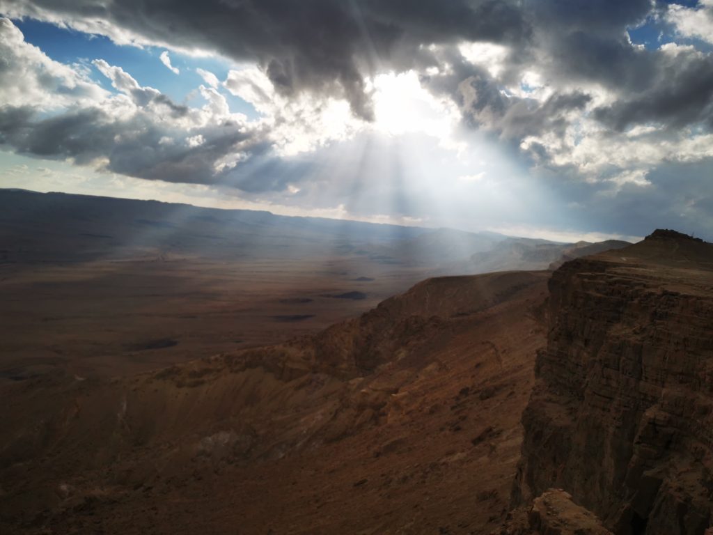 Choć w Eljacie było świetnie i wiele było do zobaczenia czy przeżycia to po jakimś czasie było trzeba ruszyć na północ. Następnym naszym przystankiem było Mitzpe Ramom. Niewielkie miasteczko położone w środkowej częsci pustyni Negew, na krawędzi krateru Ramon. Sam krater, który powstał w skutek erozji ziemi robi niesamowite wrażenie, ponieważ jego długość wynosi 40 km, szerokość 9 km, a głębokość 300 m.