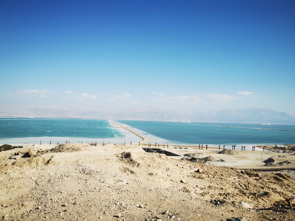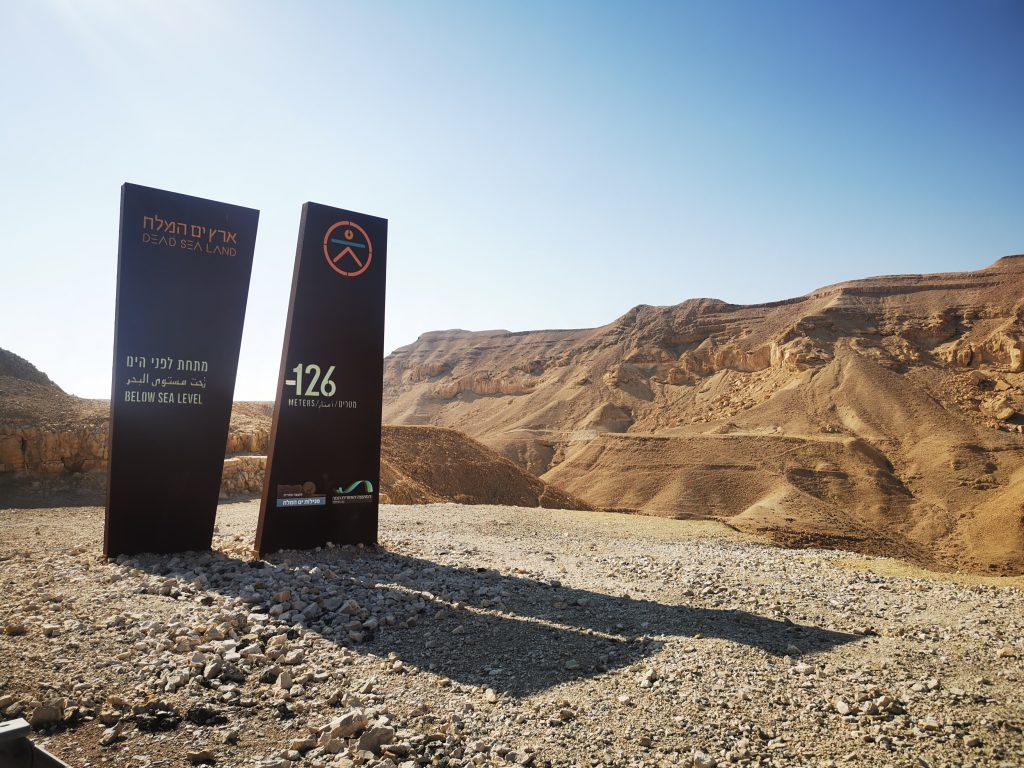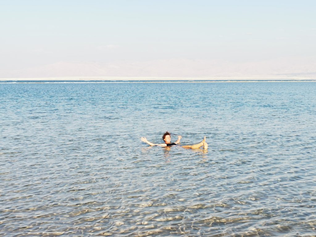 Gdy już udało nam się wjechać na krater to wypadałoby trochę zjechać. Udało się nawet nie trochę, bo udaliśmy się do położonego na prawie 400 m pod powierzchnią ziemi morza Martwego. Kąpiel w morzu Martwym to ekstra przeżycie, w którym możemy przez chwilę poczuć się jak Jezus unosząc się na wodą. My wybraliśmy się do mega turystycznej miejscowości Ein Bokek, gdzie co prawda otoczeni zostaliśmy drogimi hotelami, McDonaldem i całym nadmorskim kiczem. Jednak darmowy kemping (link do kempingu), dostęp do świeżej wody, wifi oraz cudowna droga wzdłuż morza Martwego wynagrodziły nam to małe niedogodności ;).